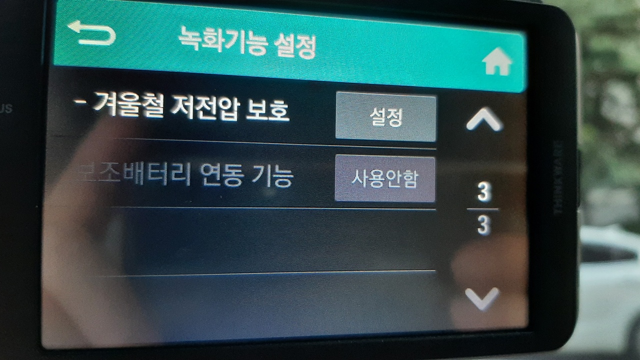 녹화기능 설정 메뉴는 아래 사진처럼 3페이지로 구성되어 있습니다.