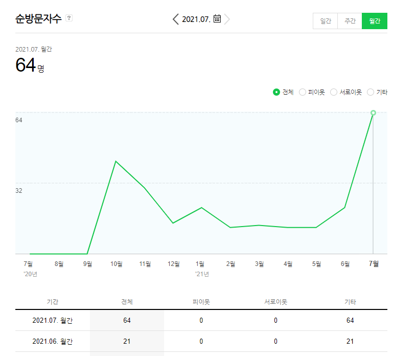 아직은 병아리 수준의 블로그라 유의미한 데이터는 아니지만, 재미로 7월 통계를 분석해 보겠습니다.